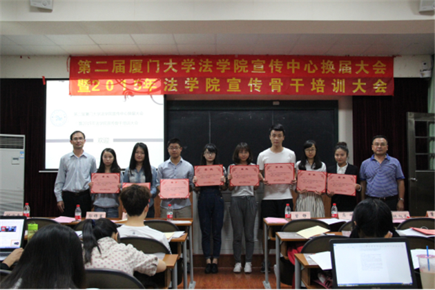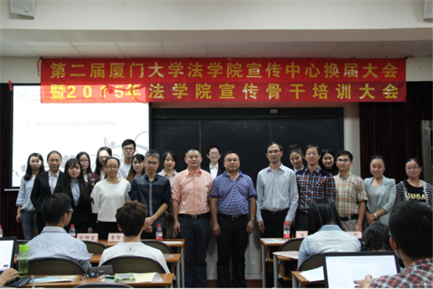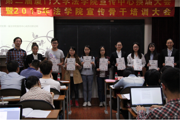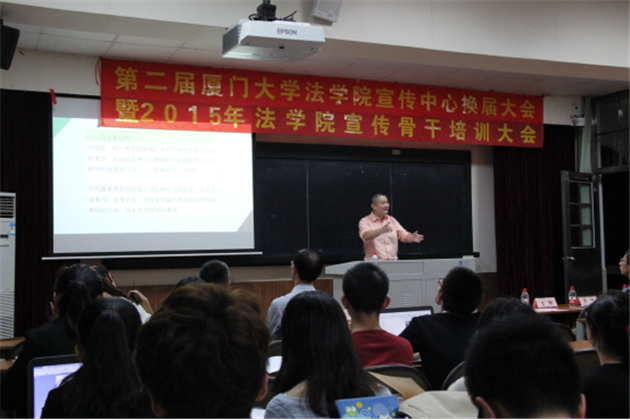 2015年11月4日晚7点,第二届yl8cc永利官网宣传中心换届大会暨2015年yl8cc永利官网宣传骨干培训大会在永利官网A302拉开帷幕。厦门大学党委宣传部副部长曾铮、永利官网党委书记李智勇、党委副书记郭锦星、团委书记高斌、团委副书记林旭荣,辅导员宋磊华,外事秘书董晓晴,实验室、网络管理胡方舟,yl8cc永利官网宣传中心新一任主任邵莉,出席了本次换届暨宣传骨干培训大会。会议由第二届yl8cc永利官网宣传中心采编部部长金柏鹤主持。
