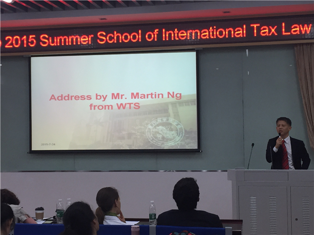 Martin Ng先生在致辞中表达了对维也纳团队授课的赞赏以及对所有暑期班学员完满完成学习的祝贺,并表示WTS对厦门大学国际税法暑期班将给予持续 的支持。他祝愿国际税法暑期班越办越好,为热爱国际税法的人士提供更广阔的交流平台。