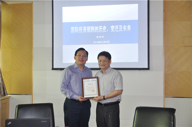 2015年10月9日至10日,厦门大学陈安国际法学发展基金会“陈安国际法学讲座教授”蒋成华博士“中国国际投资法的新实践”系列学术讲座在永利官网C419会议室成功举办。厦门大学陈安国际法学发展基金会理事长、国际经济法研究所所长曾华群教授参加并主持了讲座教授聘任仪式,厦门大学国际经济法研究所李国安教授、陈辉萍教授、池漫郊教授、陈喜峰副教授、张璜助理教授及国际法专业各年级的博士生、硕士生及部分本科生全程旁听并参加了系列讲座。