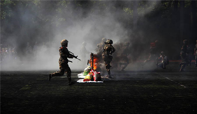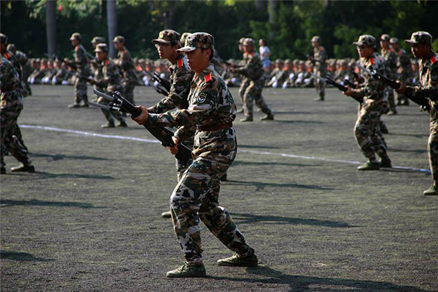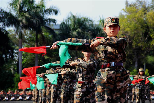 队列方阵检阅结束后,特殊项目的同学们带来了表演。刺刀、军体拳、匕首操、旗语、格斗术等项目精彩纷呈,同学们将这半个月的训练成果以最佳的状态展出来,赢得了阵阵掌声。尤其是军事战术的表演,更是将全场气氛推向了高潮。