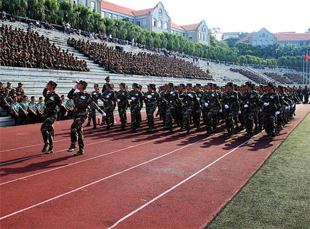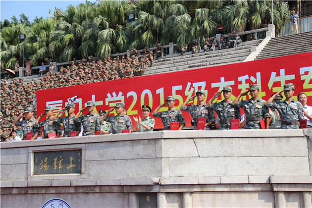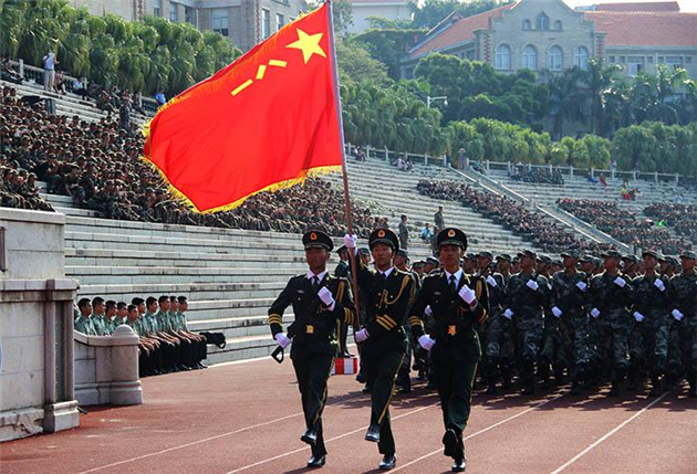 9月11日上午八点半,在上弦场举行了厦门大学2015届本科生军训结业典礼。首先,由军训总指挥官宣布结业典礼开始,全体起立奏唱国歌。接下来,队列方阵整装待发,迎军旗,并接受校党委书记张彦与部队领导的检阅。