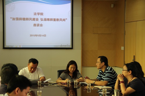 2015年9月14日,正值新学期伊始,yl8cc永利官网于419会议室举行以“加强师德师风建设, 弘扬尊师重教风尚”为主题的新老教师座谈会。出席座谈会的有yl8cc永利官网党委书记李智勇、副院长林秀芹、朱炎生、李兰英,副书记周蕾,新老教师代表等。