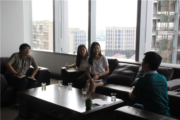 红岭创投福建分公司总经理林海滨先生和杨小璐女士亲切接待了实践队成员。在访谈中,实践队成员就P2P行业发展的现状,信息披露,互联网金融的发展以及针对红岭创投的平台特色,发展需求等方面进行了深入了解与提问,总经理林先生对每个问题都进行了耐心细致的回答,队员感觉都获得了很多知识。
