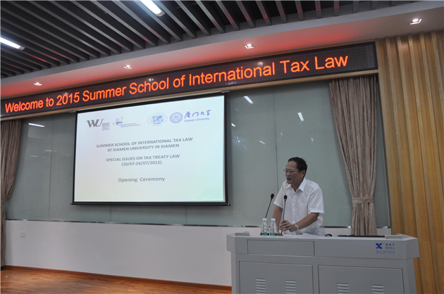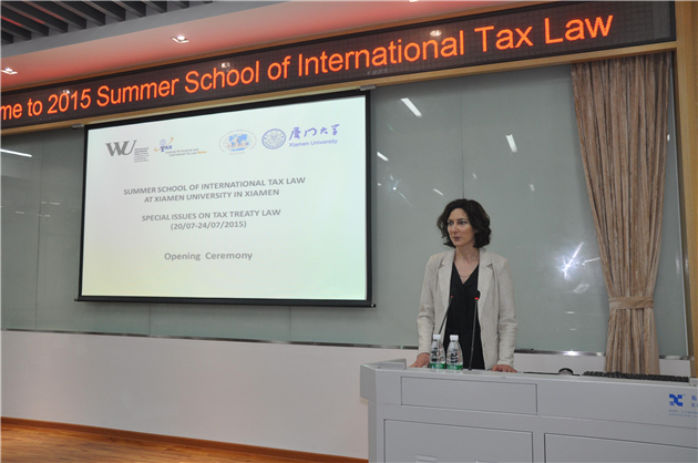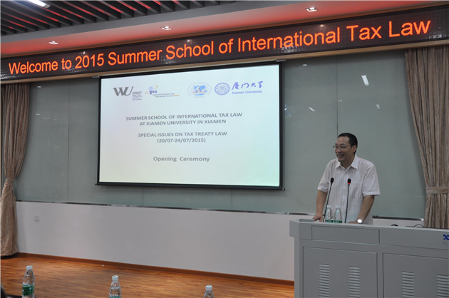 7月20日上午8点30分,2015年厦门大学国际税法暑期班在yl8cc永利官网B137报告厅拉开帷幕。本次暑期班由厦门大学国际税法与比较税制研究中心(CITACT-XMU)和维也纳经济大学奥地利及国际税法研究中心联合举办。开幕式由yl8cc永利官网副院长朱炎生老师主持, CITACT-XMU主任廖益新老师以及维也纳经济大学奥地利及国际税法研究中心的Rita Szudoczky教授分别在开幕式上致辞。