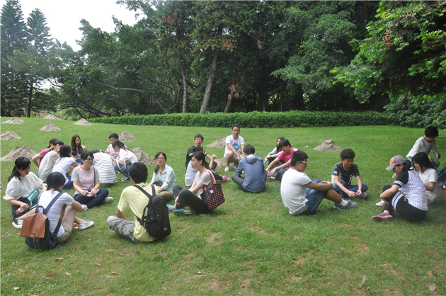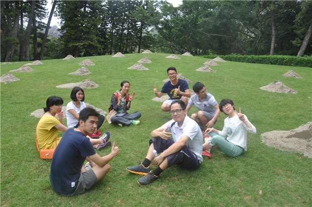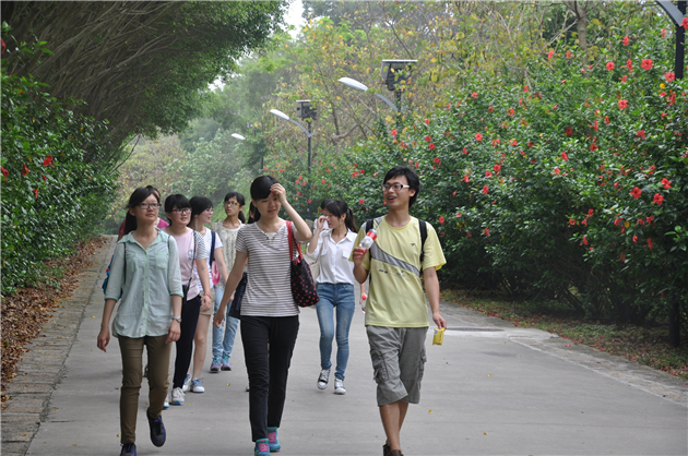 同学们和着阳光,和着花香,唱着歌,哼着曲,不知不觉就到了沙生植物园,在小组成员的通力合作下,大家都顺利地找到“宝物”,更有许多同学流连于沙生植物区形态各异的仙人掌中不肯离去。十点四十左右,各小组都到达了植物园西大门旁的南洋杉草坪,在进行了简单有趣的三院联谊素质拓展之后,此次的万石登山游园活动顺利结束。