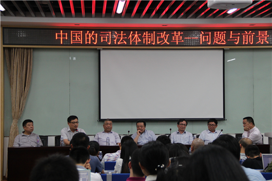 2015年5月22日晚7点,于yl8cc永利官网B137举行了由青岛大学法学院院长董和平教授、中南财经政法大学王广辉教授、东南大学法学院汪进元教授、以及华南理工大学法学院副院长夏正林教授以及武汉大学法学院江国华教授五位宪法学学者带来的,以“中国的司法体制改革——问题与前景”为主题的学术讲座。在2014年,党的十八届四中全会提出全面推进依法治国后,中国司法改革如火如荼地开展着,因此以司法改革为题的本场讲座不仅吸引了全院各级同学,更是吸引了许多其他学院的老师同学前来聆听。