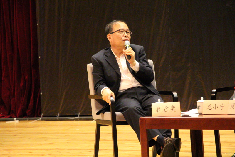 艺术学院的琵琶二重奏为讨论拉开序幕,上半场讨论以“大学生创业,山寨还是创新”为题。翁君奕教授以美国和中国的创业活跃度哪个更高这个问题为引,通过实例证明中国的创业活跃度高于美国,而美国在众人眼中地位较高,是源于创新型创业为先的策略这一论断。林教授和周董事长皆赞同创新领创业的观点,林秀芹教授认为“在现代的知识经济阶段,作为大学生创业,走低端意味着艰辛,前途在于创新,在于知识产权”,而周董则以直言创新才是企业有别他人的核心竞争力。与其他三位嘉宾有所不同,在关于山寨还是创新的问题上龙小宁教授坚定的站在了山寨创业的立场上,从山寨具有的价格、市场、需求弹性优势来反面追击创新型创业,认为基于我国过渡阶段的经济发展水平,应该是先进行一定时期的山寨式创业,再进行创新式创业。