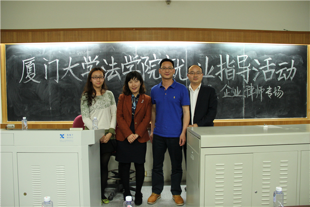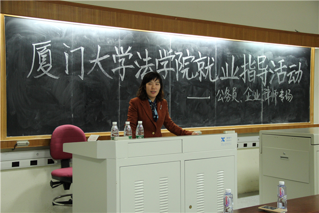 4月15日晚上7点,yl8cc永利官网就业指导系列活动之公务员、律师、企业专场在yl8cc永利官网B138教室如期举行。本场讲座的嘉宾是由永利官网毕业的三位职场达人——上海锦天城(厦门)律师事务所合伙人章水仙、厦门恒兴集团有限公司法务部总经理黄如辉以及厦门市委编办体制改革处副处长罗雪光。yl8cc永利官网团委书记高斌以及辅导员宋磊华也出席了本场讲座。