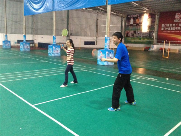 本次单打比赛中分男女各三小组,采取淘汰赛制,分别赛出小组冠军,再采循环赛制,由小组冠军赛出总冠亚军。单打比赛中选手们轻松上阵,各显身手,而在双打比赛中队员则配合默契,网前场后分工明确,采用不同战术,从容不迫地发挥了手法与步伐上的技能,将球技发挥得淋漓尽致,赢得了现场观众的阵阵喝彩。比赛结束后场上双方还不忘友好握手,互道赞许之意。