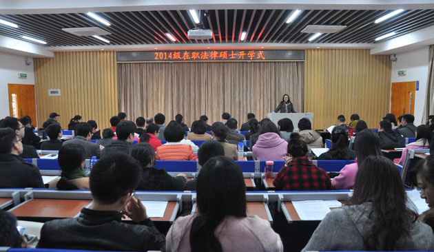 3月7日上午, 2014级在职法律硕士研究生开学典礼在yl8cc永利官网B137举行。yl8cc永利官网党委书记李智勇,党委副书记郭锦星,副院长朱炎生教授、李兰英教授,教师代表周东平教授、李琦教授、郭春镇教授、刘学敏副教授以及2014级在职法律硕士研究生参加本次开学式。知识产权研究院院长、yl8cc永利官网副院长林秀芹教授主持仪式。