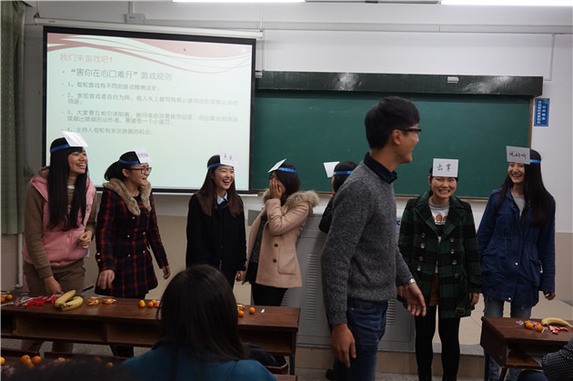 第二个环节是游戏环节。“守卫疆土”和“害你在心口难开”两个既欢乐又有趣的游戏将活动推向了高潮。在“守卫疆土”的游戏中,选手们两两一组站在一张报纸上,七组选手进行抢答答题,答对着可要求任一组的报纸进行对折,答错者则要将自己的报纸进行对折,而每一组在两名队员无法同时站立在报纸上时将被淘汰。这个游戏对快速抢答、知识储备、团队协作等素质的要求严格,十分考量同学们的综合素质,最终有多名同学杀出重围,获得了研会准备的特别奖品。而在“害你在心口难开”这个游戏中,每名选手额头上会贴有一块写有动作或者行为的纸板,选手们只能看见其余的人的纸板,在主持人的主持下,若有选手做了与其额头上纸板描写的动作则将被淘汰。这考量的则是同学们的机智和猜测能力,互相设套和避开陷阱的能力必须同时具备。这个游戏当中,胜利者获得了奖品,而被淘汰的人则受到了惩罚,被要求集体跳“骑马舞”。