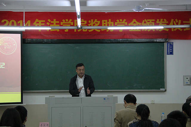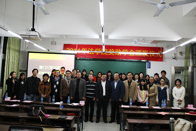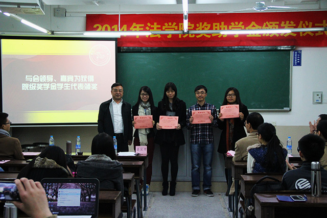 2014年12月17日晚7点,永利官网院级奖助学金颁发仪式于A304顺利举行。永利官网党委书记李智勇,党委副书记郭锦星、周蕾,团委书记高斌,辅导员宋磊华和获奖学生代表出席该颁奖仪式。本次仪式还特别邀请到数位校友,分别是:福建旭丰律师事务所合伙人吴旭、福建熹龙律师事务所合伙人刘国田、法律系八九级校友代表赵长明、福建大道之行律师事务所副主任陈章荣、律师李正春等。