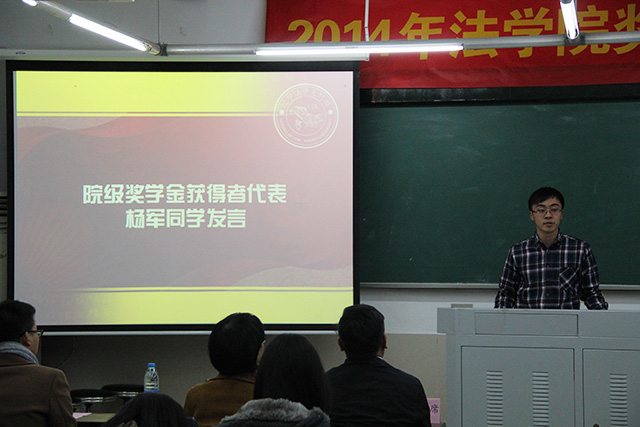 作为院级奖学金获得者代表,杨军同学向大家表明了自己的学习态度和争取更上一层楼的决心。其淡定从容、机智风趣的演讲风格获得了大家热烈的掌声。