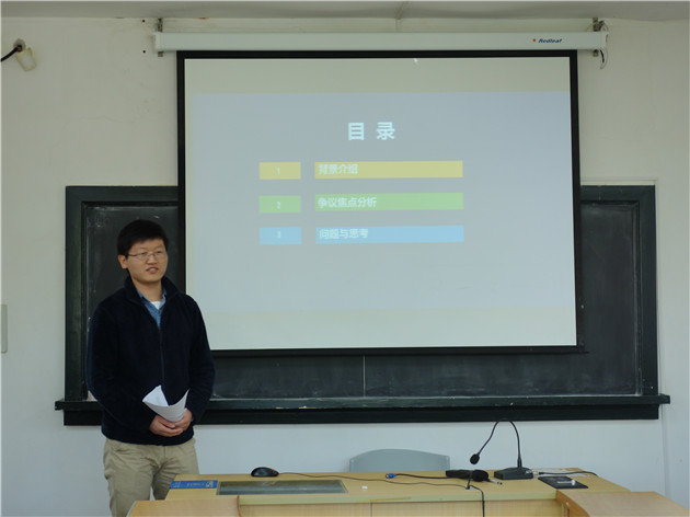 赵军磊同学首先就佛山照明虚假陈述一案进行评点,该案为最新发生的虚假陈述案例,目前已经作出一审判决。赵军磊同学在介绍了其选择案例的原因后,先就本案背景进行陈述,该案为我国为数不多的被定义为虚假陈述的案例,具有典型性与可分析性。针对本案,赵军磊同学提出四个方面的争议问题,道破本案的焦点所在,从本案出发论述了虚假陈述的认定与实施日期的确定以及股民损失的计算。针对本案焦点,其提出了自己的问题与思考,鲜明地表达了自己观点。