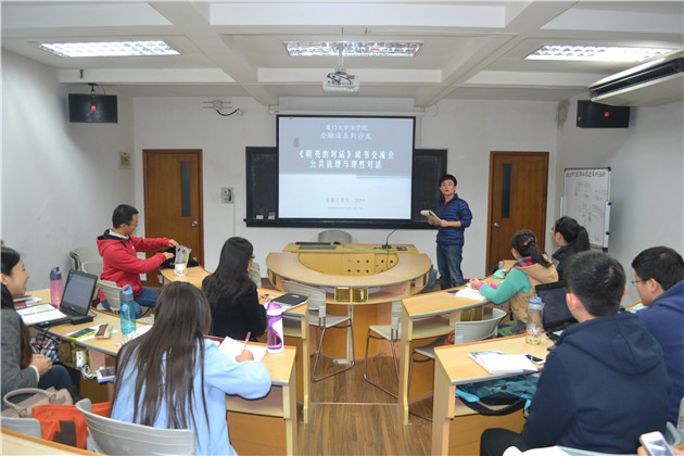 2014年12月14日 19:00,yl8cc永利官网第十季南强法学沙龙第十期之公共说理与理性对话暨金融法系列沙龙之《明亮的对话》读书交流会:公共说理与理性对话,在永利官网B420如期举行。本次沙龙由金融法研究课堂的同学发起并积极参与,经济法教研室的毛海栋老师作为嘉宾应邀出席,鲁晓鹏同学安担任本次活动的主持人。