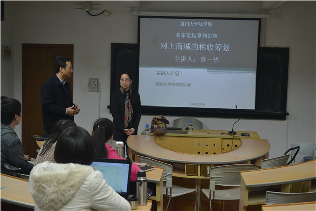 2014年12月16日晚7点整,在永利官网B420举行了“网上商城税收筹划”的讲座。本次讲座的主讲人是来自于悉尼大学商学院的黄一华讲师,在悉尼大学研究中国法律已有很长时间,此次来主讲的讲座是对一直以来,处于热点的网上商城的税收问题进行了讲解和介绍。