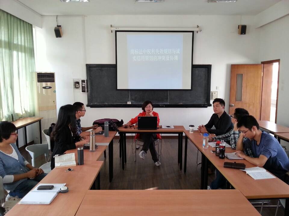 本次沙龙主题为“商标法中权利失效规则与诚实信用原则的冲突及协调”。彭媛媛同学的讲解分为三个部分:首先,以诚信为基础阐述诚信在商标法中价值;其次,通过不同部门法和心理学交叉学科的交流探讨商标法第45条存在的问题;最后,借鉴国外经验并提出解决问题的路径。彭媛媛同学在阐述中,以2013年修订的《商标法》第7条诚实信用原则为入手,阐述第45条在先权利救济时效规定存在的问题:商标权侵犯在先权利时,商标法和其他民事法律对在先权利保护的冲突及协调问题;为了论证该问题,彭媛媛深入分析了“乔丹诉乔丹体育股份公司姓名权侵权案”、“易建联提请商标评审委员会撤销易建联公司’易建联YIJIANLIAN’注册商标案“说明现行商标法第45条在先权利救济时效规定与《民法通则》《反不正当竞争法》等其他法律的冲突。彭媛媛认为,德国、日本、台湾就商标法中对商标权侵犯在先权利时,只要存在恶意在先权利人可以提请相关机构撤销或宣告相关注册商标无效,不受时间限制,而我国商标法第45条只有驰名商标所有权人对侵犯其权利的注册商标不受时间限制是不合理的,有违诚实信用原则。最终指出,通过国外经验和交叉学科的理解,指明我国商标法第45条应该对恶意注册和使用注册商标侵犯在先权利的,在先权利人提请商标评审委员会宣告该注册商标无效权利,都应没有时间限制更符合诚实信用原则,并由此解决各部门法对权利保护冲突问题。