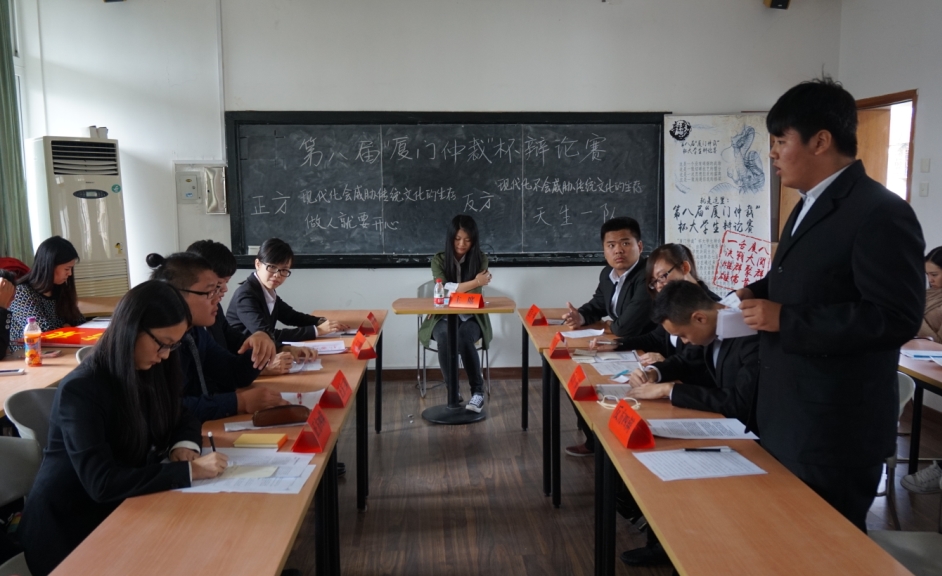 本周末,第八届厦门大学“仲裁杯”辩论赛在yl8cc永利官网如火如荼地进行。在11月15、16二日共进行了17场精彩辩论,赛程紧凑,赛事激烈,让我们充分领会了现代大学生奋发向上的精神风貌。