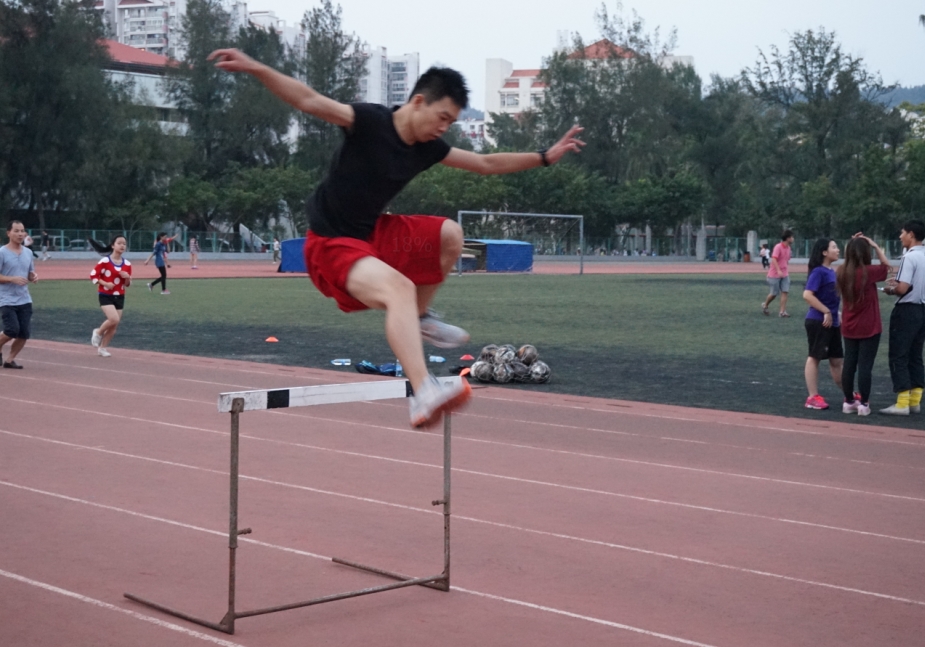 除了集体项目,个人项目同样开展得如火如荼,这边曹宇君同学魁梧有力,沉重的铅球在其掌握下似乎也变得轻巧,坚定的眼神,完美的抛物线,让场边练习的其他选手都不禁发出惊叹;那边100米跨栏的那续怀同学身手矫健,跨栏姿势专业,跨栏速度极快;女生们也毫不逊色,个个迈开大步,以昂扬之势勇敢越过跨栏,卓越英姿为午后的演武场又添一道光芒。