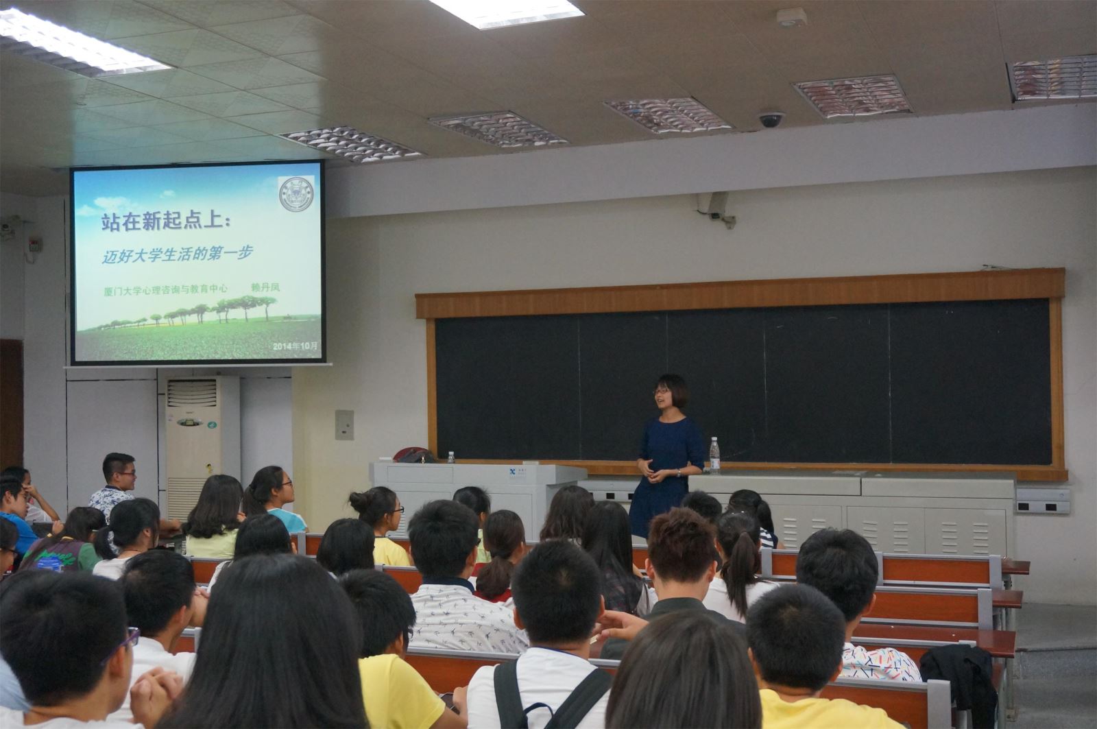 10月23日下午,在永利官网B138教室,心理咨询与教育中心赖丹凤老师为2014级新生带来了《站在新起点上,迈好大学生活第一步》的心理讲座。本次讲座旨在帮助大一新生们解决人际问题,优化心理素质,更好更快地适应大学生活节奏。