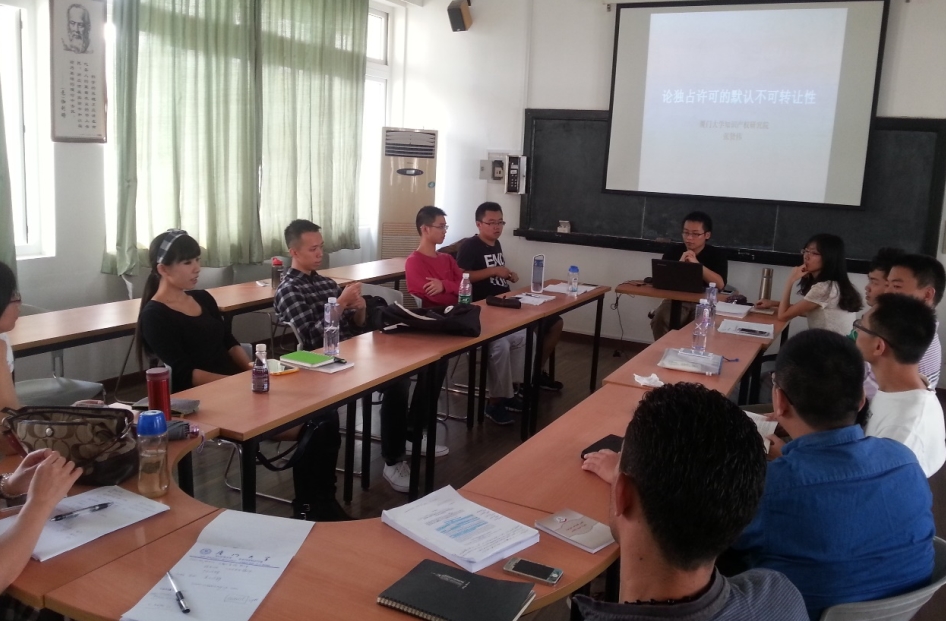 本次讲座的主题为“论独占许可的默认不可转让性”。张贤伟同学以台湾学者的观点为标靶,引出问题:独占许可在没有合同约定时,被许可人是否可以未经许可为再许可?
