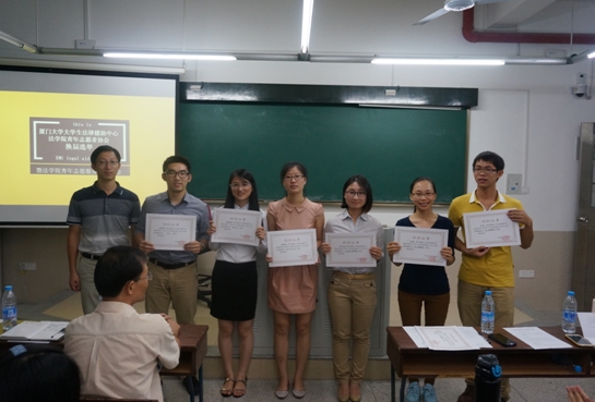 最后,第十一、十二届法援新老成员交接、合影。至此,第十四届厦门大学大学生法律援助中心换届选举圆满成功。第十四届成员定能传承薪火,把法律援助中心建设成为有自己优势与特色的组织,继续开拓品牌活动,赢得更多的肯定,发挥更大的平台作用。