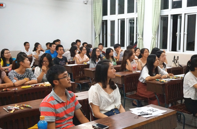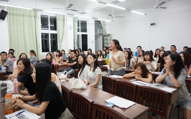 本次大会采用轻松愉快的茶话会形式,在场同学们分享着小零食,在谈笑间开始了今晚的大会。作为开场,首先主持人喻皓为新成员们分享了自己一年来在研会工作的经验,其幽默风趣的发言给本次大会定下了轻松的基调。研究生会主席汪雯发言,表达了对新成员们的热烈欢迎,希望大家在认真工作的同时能提升自身能力、结交好友,并提出了对新成员的工作期许。紧接着,大会第一个环节正式展开,通过视频和幻灯片的方式向新成员们展示了研究生会在过去一年里所取得的丰富成果以及新干事们的风采,赢得了全场阵阵惊叹与热烈掌声;第二个环节是自我介绍环节。从主席、副主席、各部部长再到各部门新成员,大家都在大会上进行了或幽默或热情,或卖萌或耍帅的自我介绍,整个过程气氛热烈,笑声不断;第三个环节是游戏环节。由外联部成员们组织并主持了有趣的破冰游戏——“萝卜蹲”,通过这个游戏,大家不仅认识了各自部门以及其他部门的成员,也使得成员相互之间相处变得更加融洽轻松。游戏结束之后,获胜的个人和小组获得了研会精心准备的小奖品,而惜败的同学们则接受了绕口令、跳舞、唱歌等小“惩罚”。