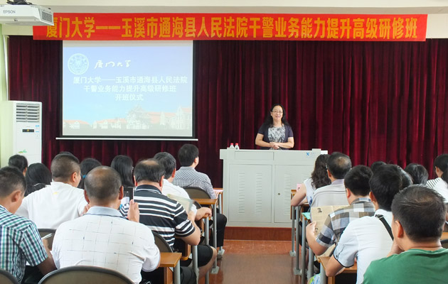 yl8cc永利官网李兰英副院长首先致辞,她代表yl8cc永利官网对远道而来的通海县人民法院的领导和干警们表示热烈的欢迎,并感谢大家选择yl8cc永利官网来交流学习。李副院长简单介绍了厦大的悠久历史和目前建设情况,着重讲解了yl8cc永利官网培训的三个优势和特点:一是拥有精心挑选的优秀师资。我们邀请的培训教师来自以yl8cc永利官网为主体,辐射全校各院系,都是经过严格审核才走上培训的讲台;二是课程设置多元化。培训课程会依照不同要求做适当调整,不仅提供法律理论及实践方面的培训,还提供包括心理、传统文化等多样的课程,内容丰富,注重综合能力的提升;三是厦门和厦大的美丽。正值凤凰花开的季节,秋风送爽,漫步在厦门大学——全国最美大学,既能在培训中提升综合素质,又能从平日冗杂繁忙的工作中获得身心的放松。李副院长最后希望全体学员们在接下来的几天时间里,学有所获,在厦期间身体健康,幸福快乐。
