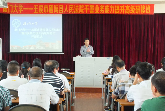 随后,玉溪市通海县人民法院史云顺院长做本次培训的动员致辞。史院长首先对yl8cc永利官网为此次培训所做的周密安排和辛勤劳动表示感谢。他表示此次培训旨在提高干警在新形势下司法工作的业务能力,双方精心选择了相关课程,相信此次培训对提升全体干警的综合素养和能力会大有帮助。同时,史院长对学员们提出了几点要求,希望大家加强和改善学习,抓住此次培训的难得机会,不断提升玉溪市通海县人民法院干警的综合素养和能力,真正能通过培训学有所思,学有所获。来自玉溪市通海县人民法院的50名领导及干警参加了本次培训。