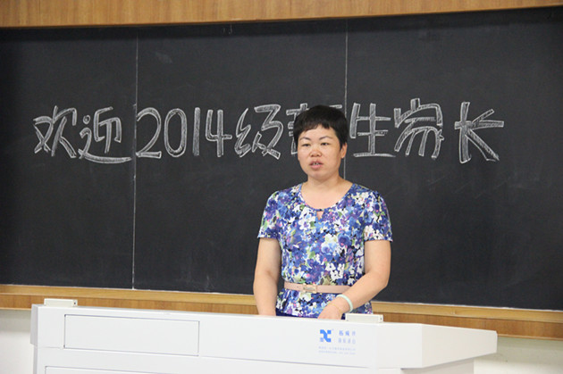 紧接着教学秘书陈丽清老师上台发言。陈丽清老师提到了学习、学分的重要性,学分不足将会直接影响到学生的毕业,陈丽清老师鼓励家长们关注学生的学分以及挂科情况,鼓励家长们帮助和督促学生完成学业任务。陈丽清老师简洁明了的发言也获得了在场家长们的肯定和掌声。