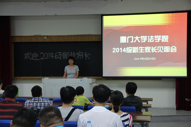周蕾老师首先发言,向各位家长分别介绍了厦大的历史、特点、文明以及学校的发展情况,同时也对法学这门专业、永利官网学生会、保研、考研以及就业等方面一一进行了详细的介绍。周蕾老师的认真和详细的讲解在会上赢得了家长们的阵阵掌声和肯定。在会上,周蕾老师也提到了学习成绩的重要性和奖助贷的事情,同时提醒家长们关注孩子们的心理问题,不要对孩子施加太大的压力,鼓励家长主动与学校进行沟通。