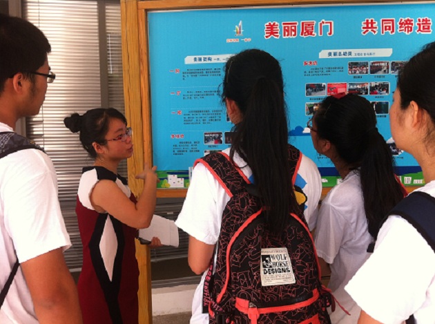7月11日上午,yl8cc永利官网“生如厦花”暑期社会实践队随同yl8cc永利官网党委副书记周蕾老师和带队的校工会杨璐老师赴海沧街道海虹社区、厦门海峡两岸信息消费体验馆和东孚镇寨后村西山社针对对“美丽厦门·共同缔造”的课题进行调研。