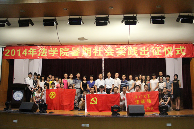 2014年7月1日晚七点,永利官网暑期社会实践出征仪式在模拟法庭举行,今年永利官网共有30支暑期社会实践队伍,各实践队的队员都来到出征仪式现场。永利官网党委书记李智勇,党委副书记周蕾、郭锦星,团委书记高斌,辅导员林旭荣、宋磊华,指导教师代表吴旭阳以及重宇合众律师事务所的律师代表出席了本次活动。