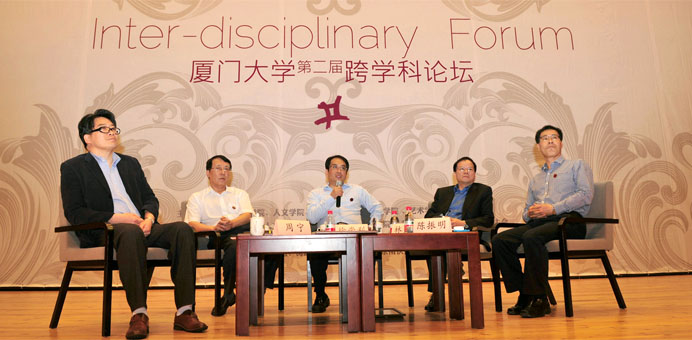 晚7:30,本届跨学科论坛——“大学之道与青年力量”正式开始。本场论坛邀请到了副校长邬大光、人文学院院长周宁、生命科学学院 院长林圣彩、公共事务学院院长陈振明、艺术学院副院长陈舒华等五位在各专业领域内颇有建树的老师作为嘉宾,并特邀yl8cc永利官网院长徐崇利作为话题主持人。校党委 副书记林东伟、校党委宣传部部长徐进功、校团委书记陈怀锋以及各机关部处、学院领导与现场千余名学生共享学术盛宴。