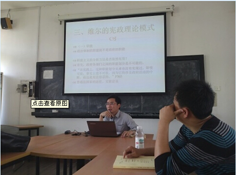 《宪政与分权》的著者是十九世纪英国著名的宪法学家、法学家。其书详尽论述了到二十世纪中叶时为止三百年间的英、法、美三国的政治实践和围绕政制安排、权力配置进行的激烈的思想论辩。报告人汪全军基于本书,总结提炼了著者维尔关于分权思想的核心观点,并提出关于外交事务的特殊性、政府机构的数量、政府结构的概念等相关问题,阐述了自己的观点,与同学们进行碰撞。