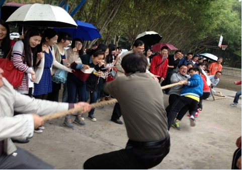 2014年4月8日下午4点30分,由法硕联合会主办的“法律硕士友谊拔河赛”在yl8cc永利官网篮球场如期举行。尽管天色阴沉,阴雨绵绵,但这并没有影响到同学们的参与热情,比赛过程中一阵高过一阵的欢呼和加油声让整个赛场都沸腾了。