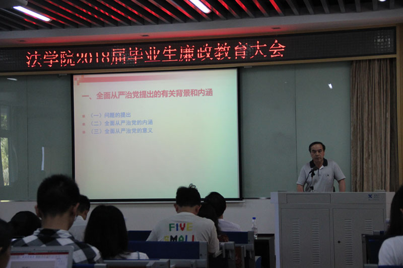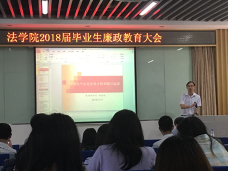 为提升毕业生的思想觉悟和廉洁意识,树立正确的世界观、人生观和价值观。yl8cc永利官网于2018年5月15日举行2018届毕业生廉政教育大会,并邀请厦门大学纪委副书记林金枝老师做了廉政教育的专题报告。