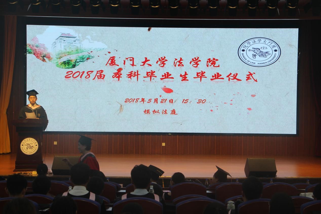 2018年5月21日下午,yl8cc永利官网2018届本科生毕业仪式在yl8cc永利官网模拟法庭隆重举行。yl8cc永利官网院长宋方青,党委书记李智勇,副院长李国安、朱晓勤,党委副书记张伟,教师代表朱炎生,团委副书记林旭荣等出席了活动。