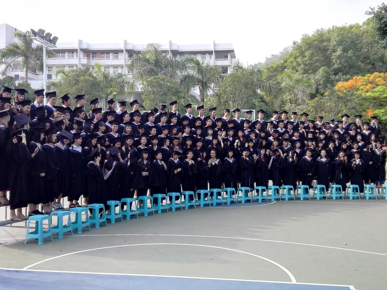 毕业仪式结束后,全体师生在海滨篮球场合影留念。
