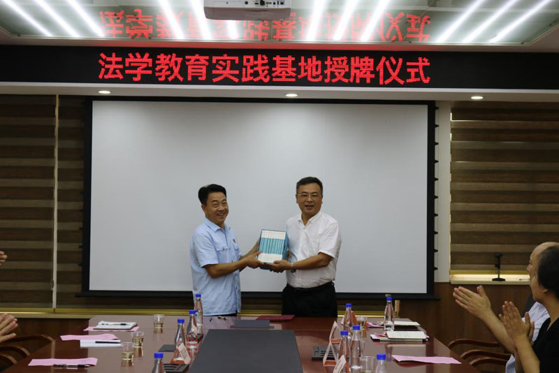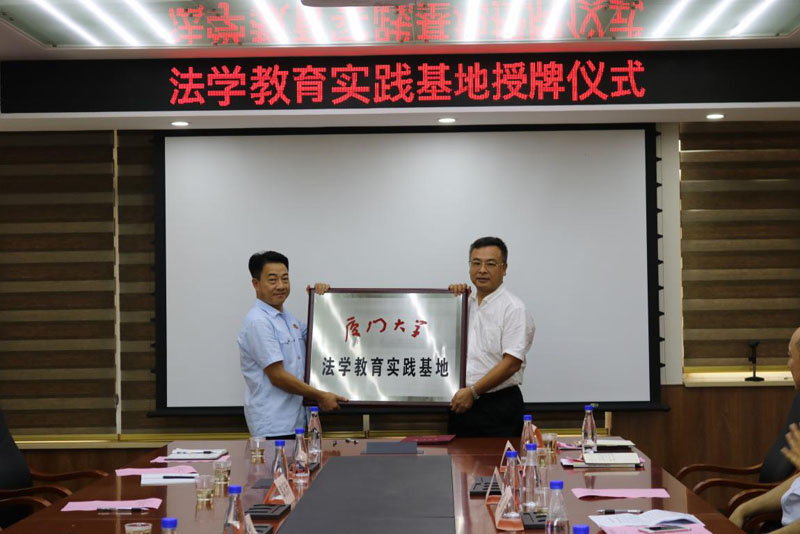 李智勇书记为“yl8cc永利官网法学教育实践基地”授牌,并向张海光院长赠送厦门大学法学文库系列丛书。