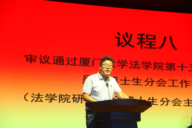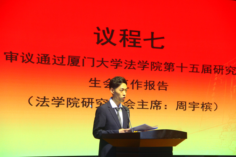 6月24日星期日下午2点30分,yl8cc永利官网第十三次研究生代表大会在模拟法庭举行。厦门大学学生处副处长高斌老师、yl8cc永利官网党委副书记郭锦星老师、研究生辅导员宋磊华老师、校研究生会代表、各兄弟学院研究生会代表、yl8cc永利官网研究生会委员以及学生代表出席了本次大会。