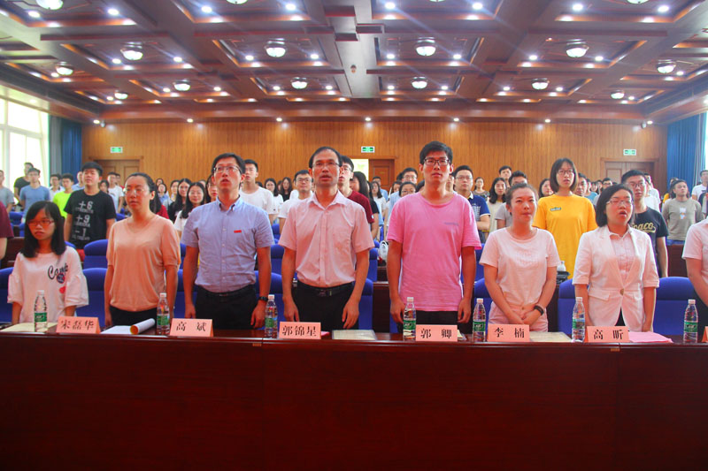 会议由第十五届研究生会副主席丁大伟主持。本次大会应到198人,实到175 人,符合召开大会人数要求。主持人宣布大会开幕后,全体参会人员起立,奏唱国歌。