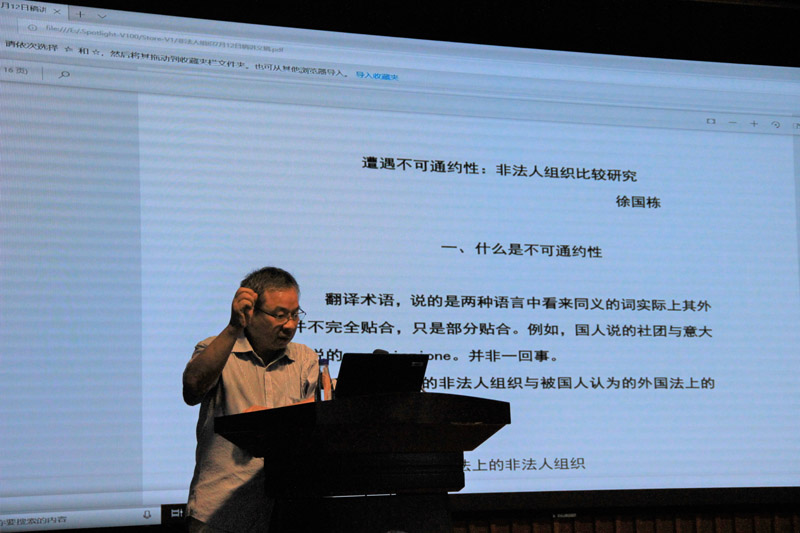 徐国栋教授为营员进行了学术讲座——《遭遇不可通约性?非法人组织比较研究》。讲座内容深入浅出,认真严谨又不失风趣幽默,启发了营员的学术兴趣和交流热情,引起营员踊跃提问和积极交流讨论,激发营员树立投身法学研究和法律事业的远大志向。