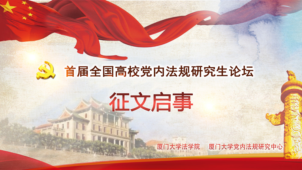 党规党纪是党员的行为准则,学习、研究和践行党规党纪是每一名党员的应尽义务。推进党内法规的理论研究、培养党内法规研究方面的高级人才,是厦门大学党内法规研究中心的重要职责。为推动全国高校党内法规学习、研究,加强全国高校党内法规研究人员的交流和学习,厦门大学党内法规研究中心特举办“全国高校党内法规研究生论坛”,并就党内法规研究的相关问题向全国高校研究生征集学术论文。