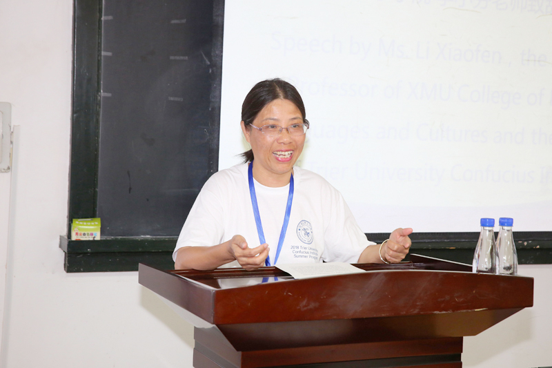 李小芬副教授在致辞中表示,本届夏令营对于来自特里尔大学的学员们来说是一个了解中国源远流长之文化以及加强厦门印象、厦大印象的机会,希望同学们能在厦门度过一段美好的时光。同时她还透露,当日是她度过的一个特别的生日。全体与会者对时值生辰的李小芬副教授表示热烈祝贺,对她为本次活动所作的辛勤付出表示由衷感谢。
