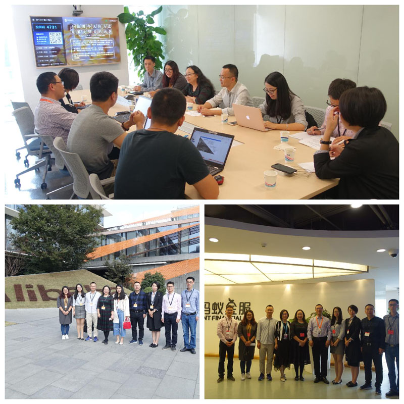 10月11日上午和下午,调研团队一行八人分别到阿里巴巴集团总部和蚂蚁金服集团总部实地调研。在阿里巴巴和蚂蚁金服相关负责人的导引下,调研团队参观了阿里巴巴总部园区、蚂蚁金服园区。阿里巴巴的徐文涛总经理,一边陪同参观,一边仔细讲解阿里巴巴的创建过程、辉煌成就、未来愿景以及阿里巴巴的企业文化和理念,大家对“快乐工作,认真生活”的信条留下深刻印象。随后,团队来到蚂蚁金服集团总部进行座谈。阿里巴巴平台治理总监连斌、蚂蚁金服安全管理专家金嬿、蚂蚁金服黑灰产业负责人等法律和技术专家已经做好充分准备,现场演示了他们研究和思考的成果。大家就网络金融犯罪发展最新动态、阿里巴巴集团和蚂蚁金服集团在实践中所遇到的网络金融犯罪疑难问题以及所面临的监管难题等展开了讨论,现场气氛热烈,持续了四个多小时,理论与实践不断碰撞,激发了很多问题灵感。