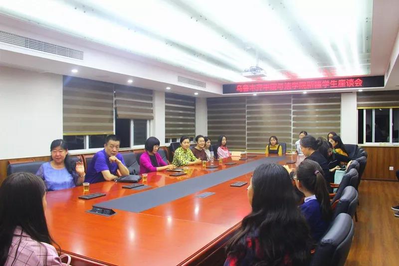 10月25日晚,乌鲁木齐中院与永利官网新疆学生座谈会在C220会议室举行。乌鲁木齐中院纪检监察处副处长陈思英、民一庭庭长程慧玲、立案二庭审判员陈敏、民五庭审判员张惠君,乌鲁木齐市县人民法院党组成员、副院长管江新,院党委副书记张伟、团委副书记林旭荣、校少数民族辅导员米娅出席座谈会。yl8cc永利官网所有新疆籍本科生到场参会。会议由张伟老师主持。
