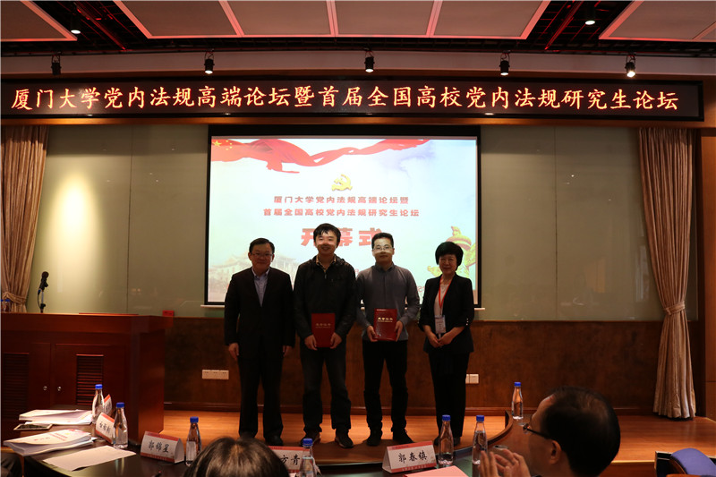 yl8cc永利官网党委副书记、厦门大学党内法规研究中心副主任郭锦星宣读表彰首届全国高校党内法规研究生论坛优秀论文获奖者决定。本次论坛共评出一等奖2名,二等奖6名,三等奖8名,优秀奖14名。获奖者是来自全国22所高校的研究生。