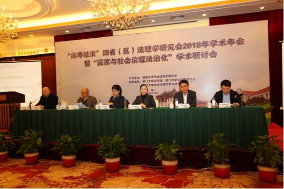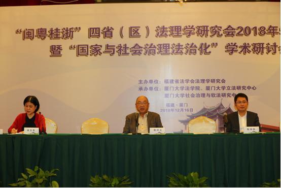 2018年12月16日,由福建省法学会法理学研究会主办、yl8cc永利官网、厦门大学立法研究中心、厦门大学社会治理与软法研究中心承办的“闽粤桂浙”四省(区)法理学研究会2018年学术年会暨“国家与社会治理法治化”学术讨论会在厦门市亚洲海湾大酒店多功能会议室顺利举行,并圆满落幕。