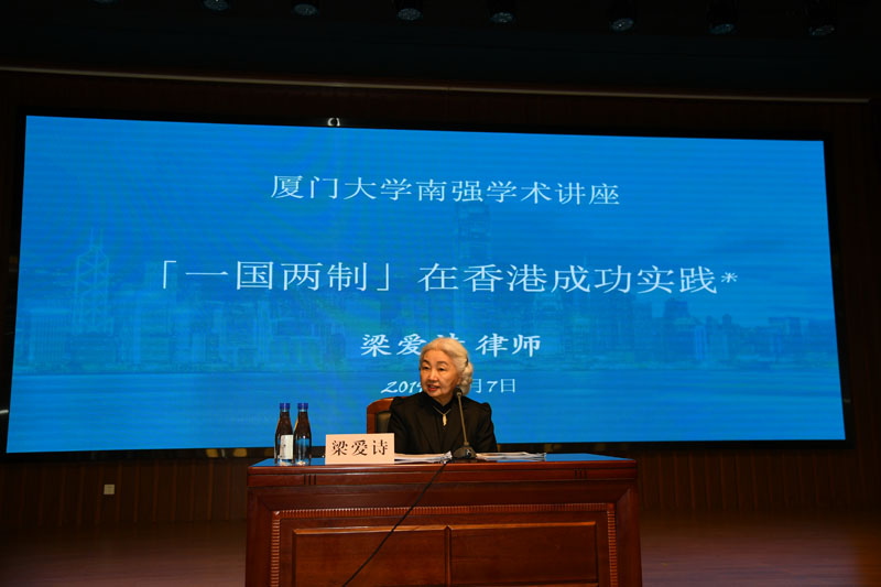 仪式结束后,梁爱诗教授为在座师生献上题为《“一国两制”在香港的成功实践》的南强学术讲座。